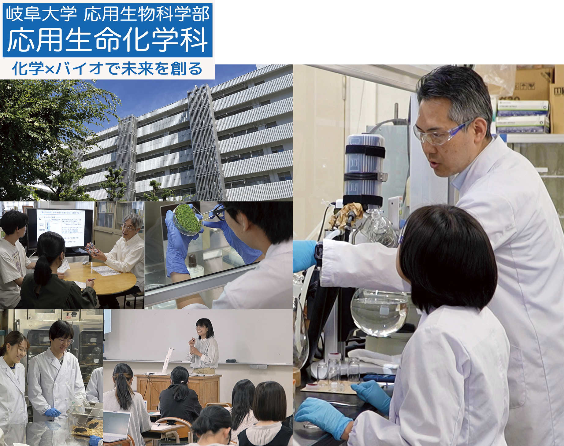 応用生命化学科は「化学」と「バイオ」を融合させた研究・教育によって未来社会の創造と持続可能な社会システムへの転換をめざします。