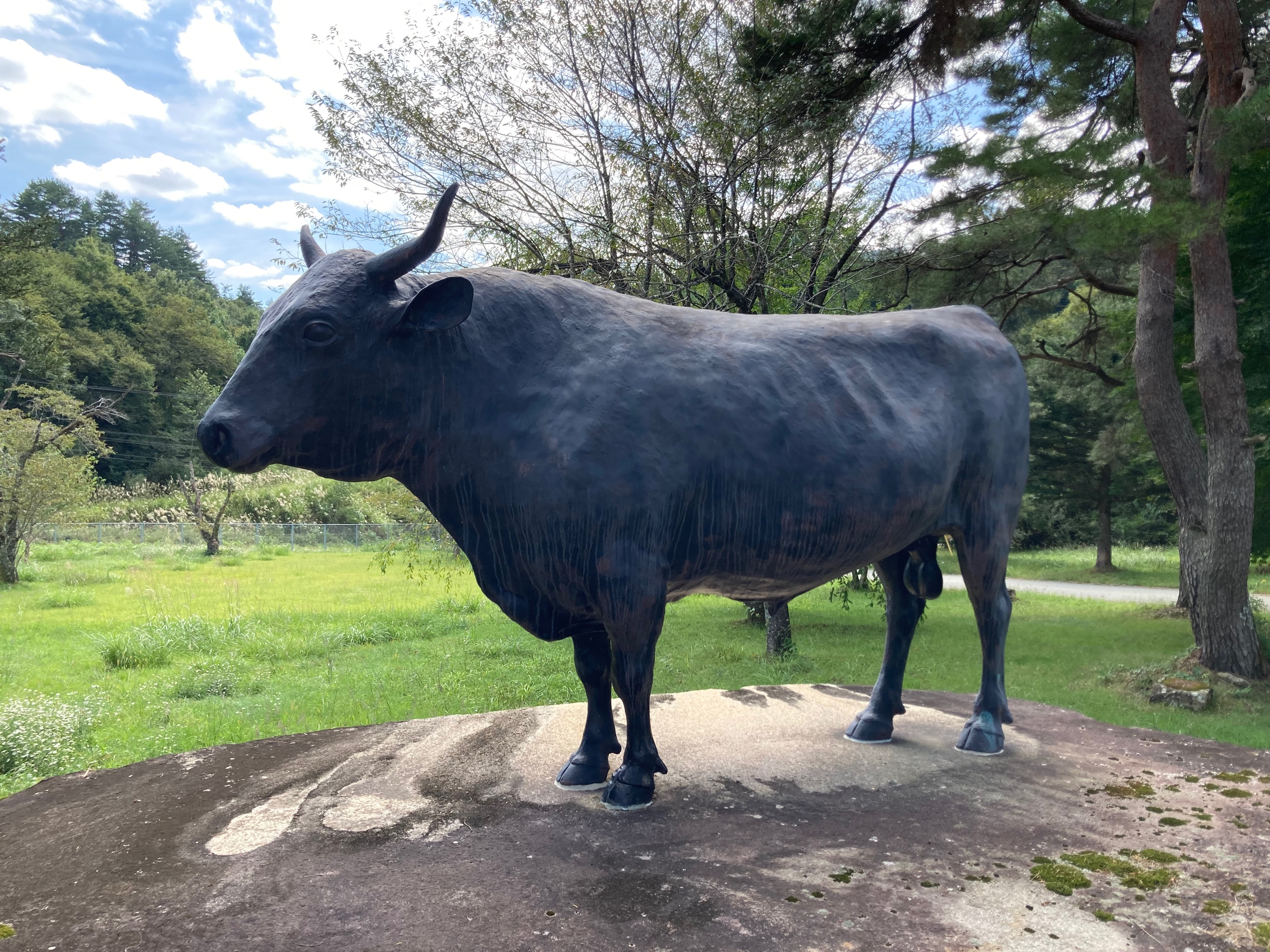 (写真)その後の牧場実習にて。伝説の種雄牛「安福号」 |
