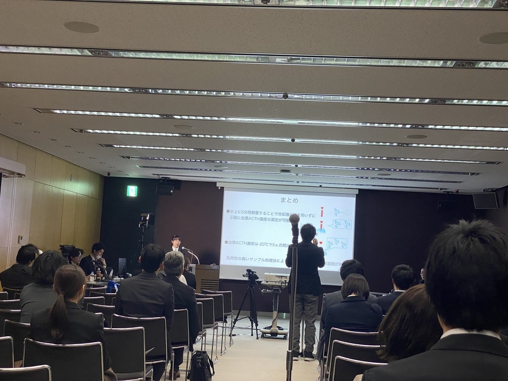 猿渡さんは医原性副腎皮質機能低下症の犬の長期経過について、七里さんは犬の副腎皮質疾患の診断において重要な血漿ACTH濃度測定の基礎的検討について発表しました。